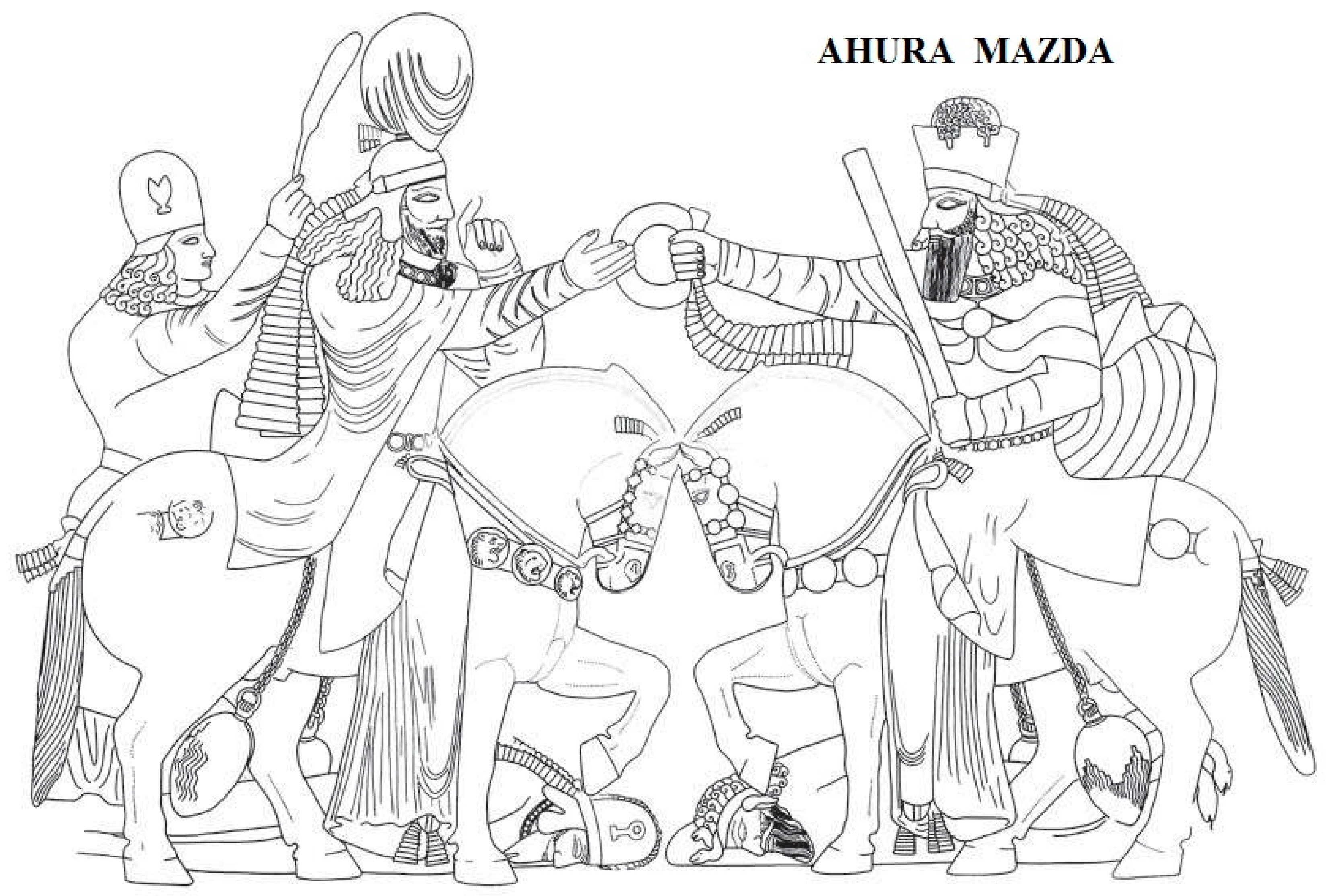 Bailey 1982, p. 29), a term clearly connected with the Avestan god Ahura Mazda, who is considered by the Persians to be the main deity at the head of their pantheon, or a “king of gods”. In the Sasanian rock relief from Naqsh-i Rustam mentioned above, the god riding a horse is called Ahura Mazda in the Parthian and Middle Persian versions of the inscription, while, in Greek, he is referred to as Zeus (in genitive case ΔIOC ΘEOΥ), who is another well-known “king of gods” (