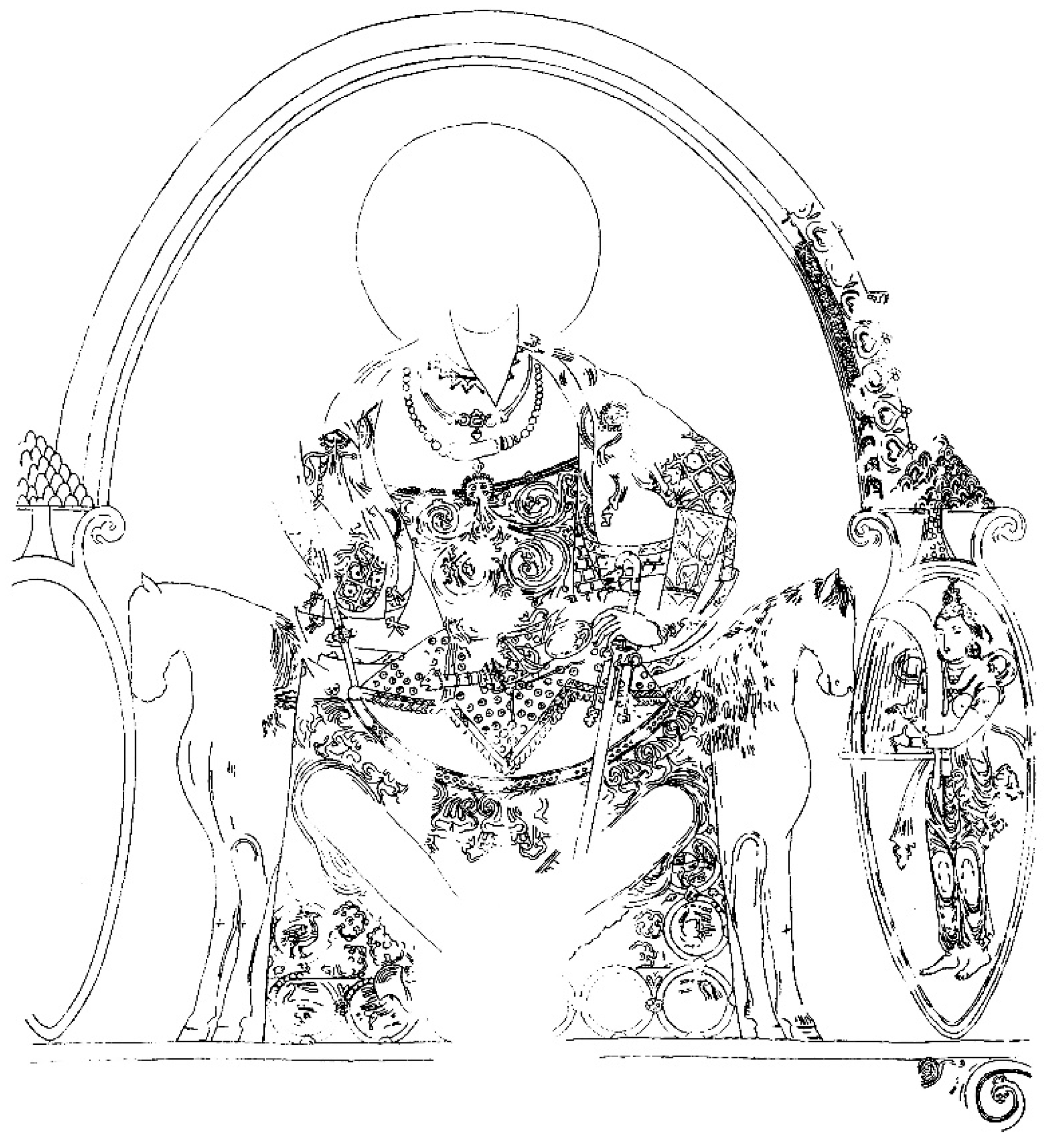 Lurje 2023, p. 450). In at least one other case, in an early ninth-century Sogdian mural painting from Bunjikat (Tajikistan), an unidentified bearded deity possibly connected with Central Asian fluvial cults is sitting on a throne with legs that take the shape of a horse’s (