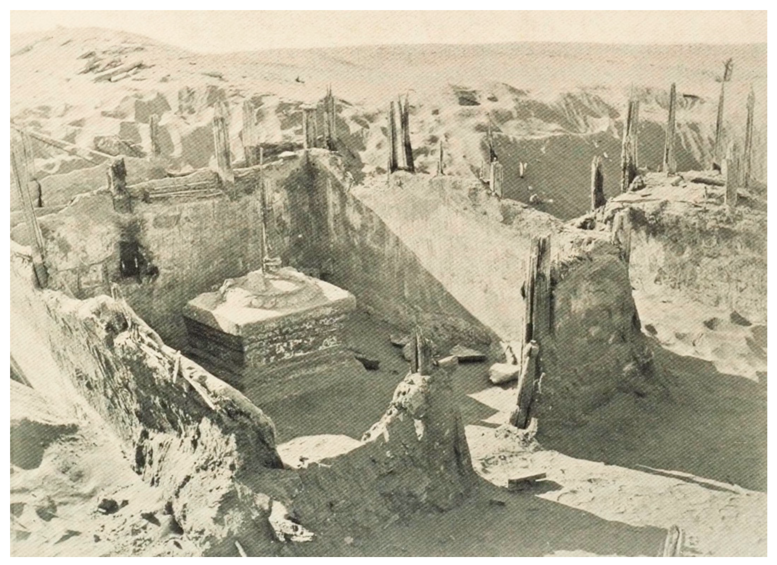 The general iconographic layout described above can be partially reconstructed in Buddhist temples excavated at several sites in the oasis in the early 20th century, as well as in temples unearthed more recently. One of the best-preserved examples is provided by the smallest temple discovered thus far in the Khotan oasis, located at Toplukdong (Tuopulukedun 托普鲁克墩) in the Domoko (Damagou 玛达沟) area (