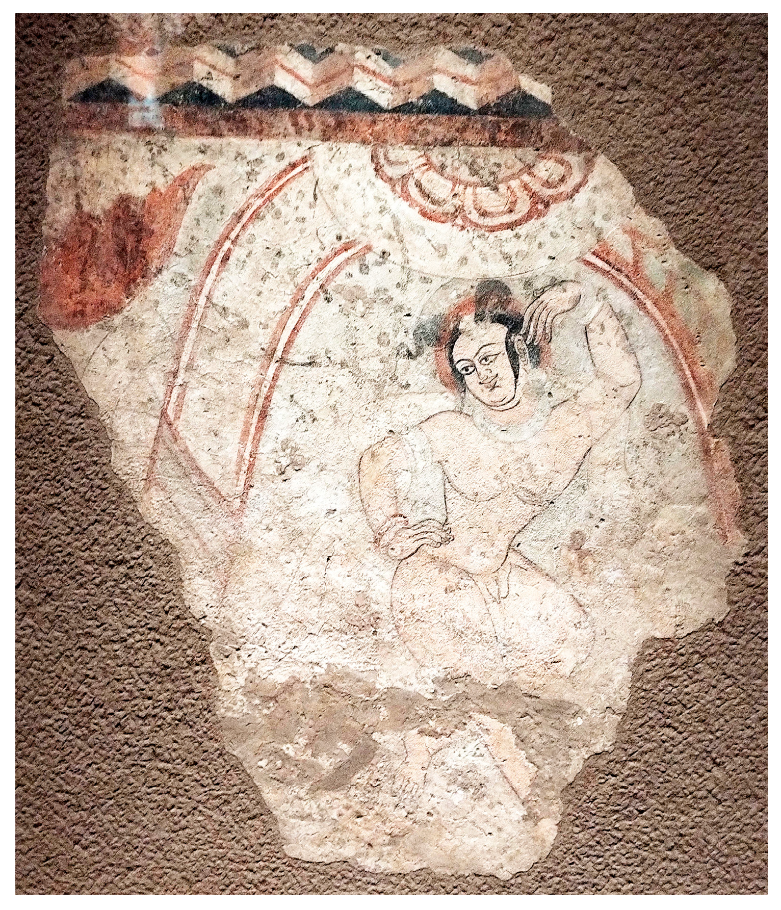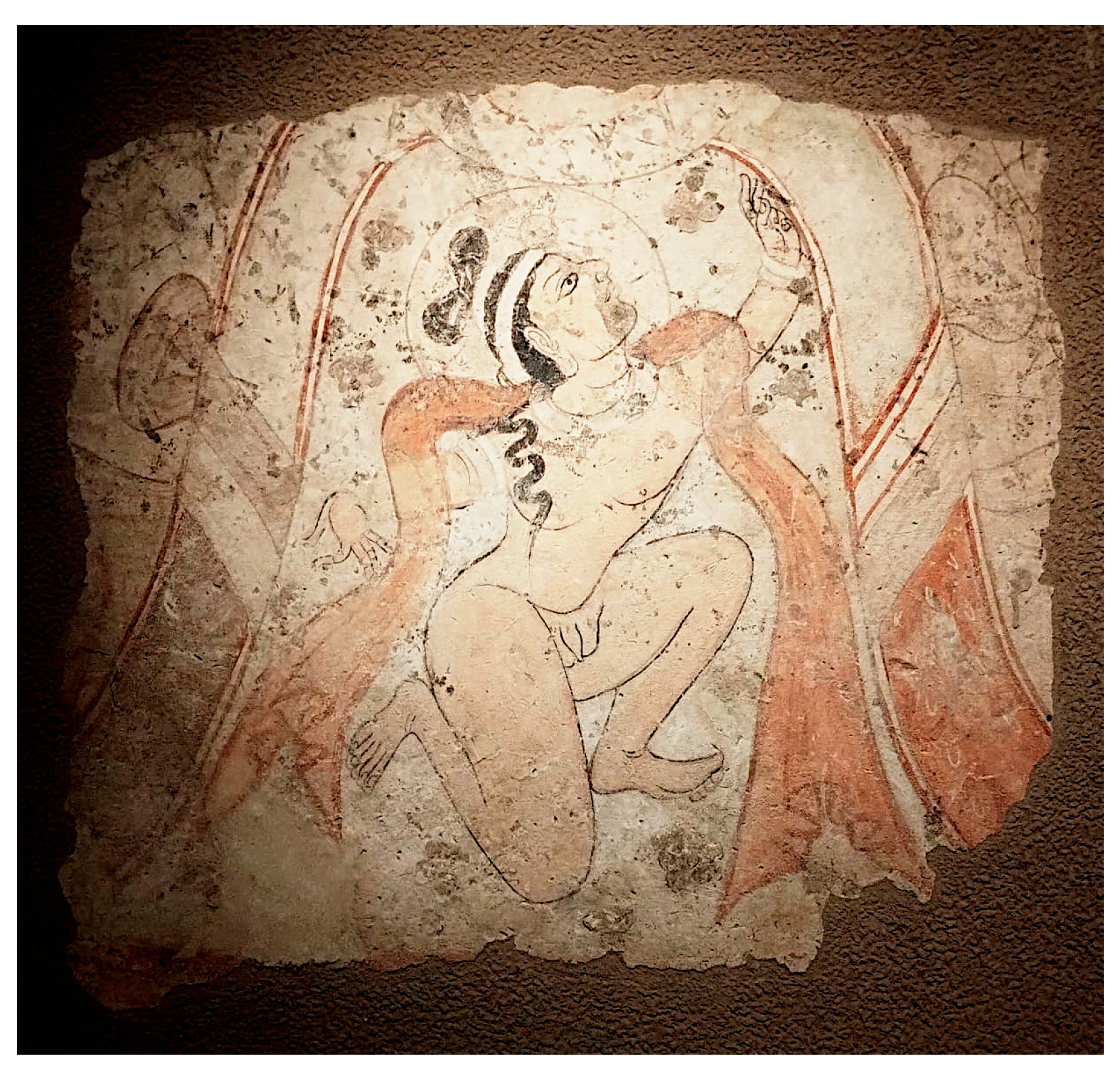 Chen 2024, pp. 55–64). Its occurrence in the Khotan oasis is significant because motifs of explicit Classical derivation, however mediated by Gandharan art, are otherwise extremely rare in Khotanese painting. The Yalangan fragments thus provide valuable evidence of the persistence of, and the delayed reception of, Gandharan-mediated Classical themes in the southern Tarim Basin. Furthermore, they raise specific questions about the chronology of early Khotanese painting.