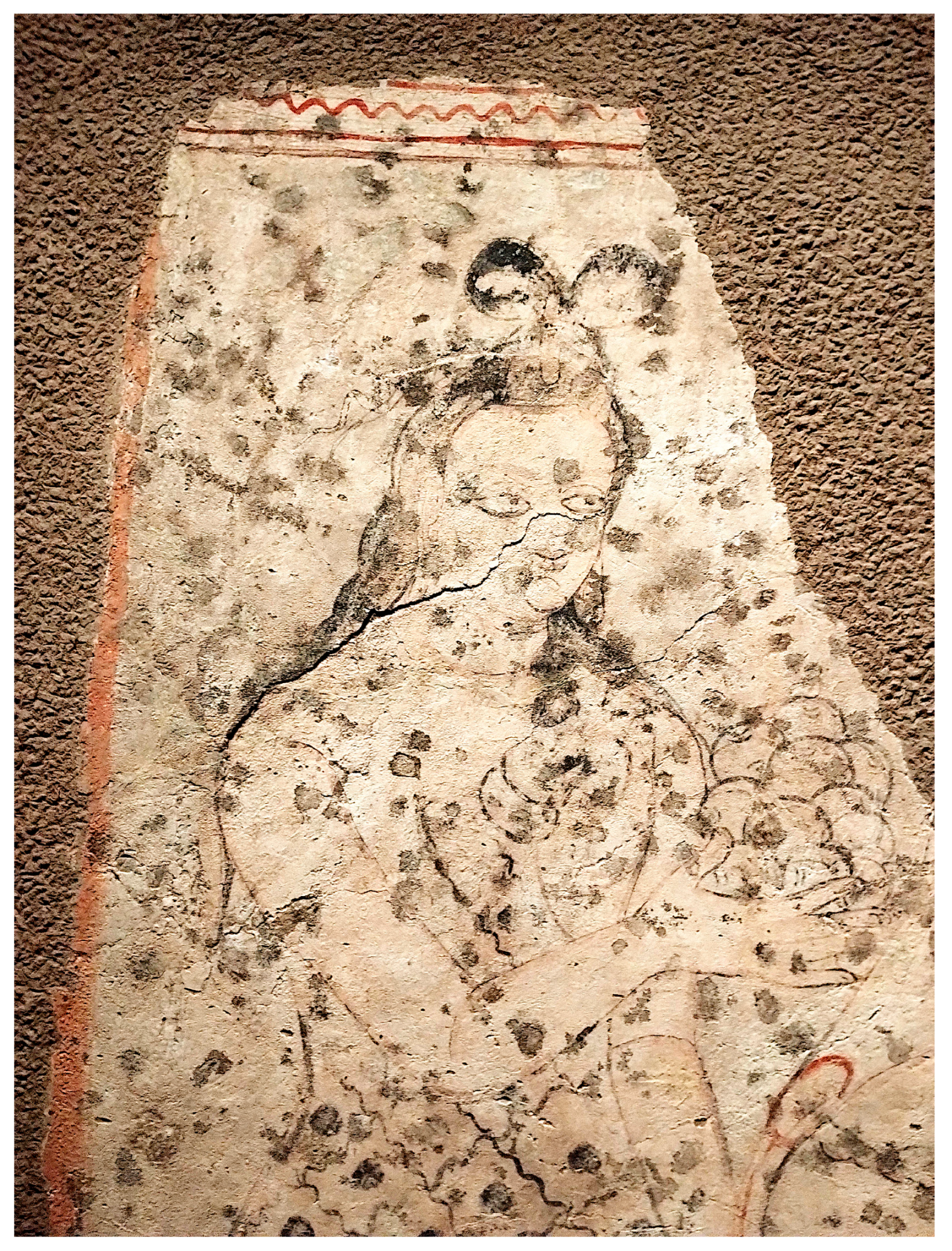 Wu 2012). Several heaps of painting fragments, in Toplukdong 3, which once adorned the west wall of a courtyard, have revealed numerous images of male and female deities bearing halos and mandorlas. Two distinct groups can be identified among these images, differentiated by their scale.
