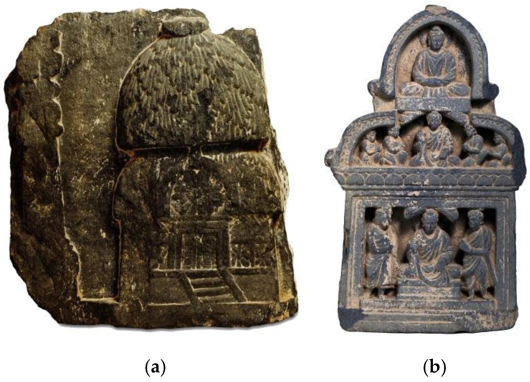 - Hameed, Muhammad, and Rabiqa Abid Bukhari. 2021. Iconography of Pensive Boddhisattva and Great Renunciation: Examples from Miniature Portable Shrines from Gandhara. Pakistan Vision 22: 60–77. [Google Scholar]