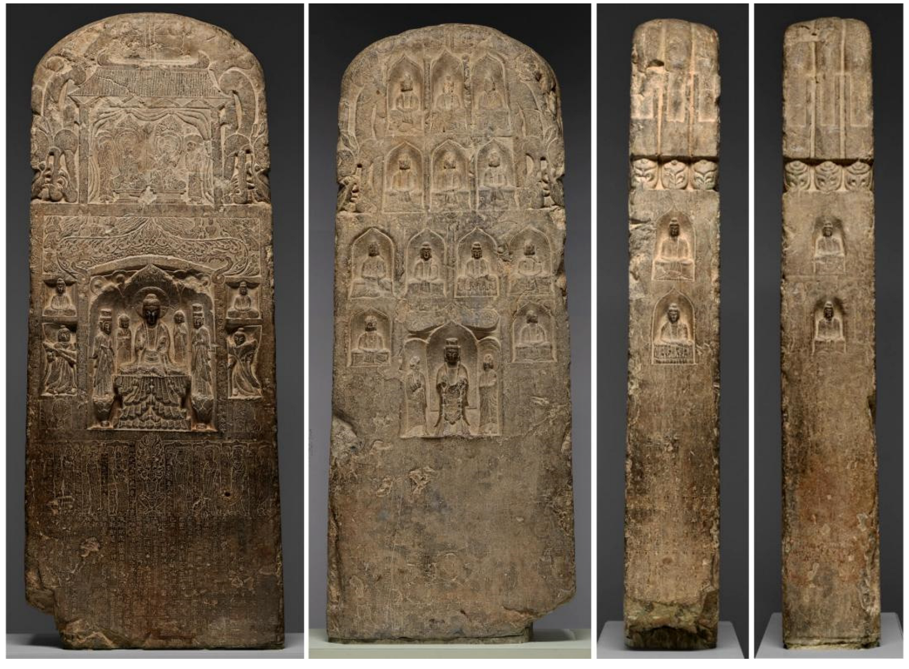 - Shaanxi Yoxian County Yaowangshan Museum, Shaanxi Lintong Municipal Museum, and Beijing Museum of the City Wall of the Liao and Jin Dynasties, eds. 1996. Selected Buddhist and Taoist Statue Steles in the Northern Dynasties. Tianjin: Tianjin Ancient Books Publishing House, p. 124. [Google Scholar]