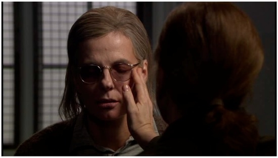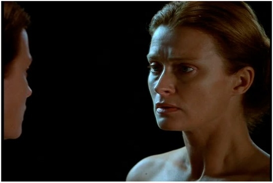 Even if the balance of saying to showing tilts a bit more to the former than the latter in Faithless, this film, perhaps most dramatically in this scene between Bergman and David, supports Truffaut’s claim about Bergman, namely, that “no one draws so close to the human face.” Truffaut adds that, in many of Bergman’s films, “there is nothing more than mouths talking, ears listening, eyes expressing curiosity, hunger, panic” (qtd. in Koskinen [14], p. 36). This is certainly true of the most wrenching images in Faithless.