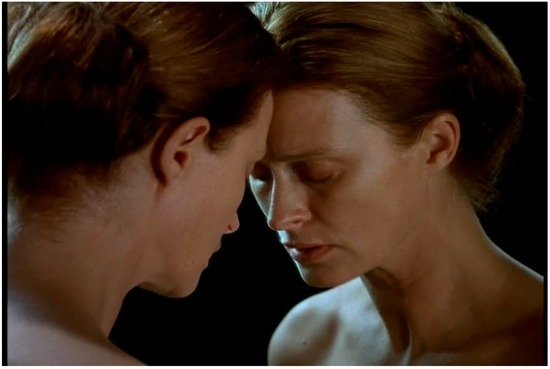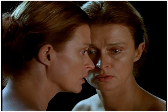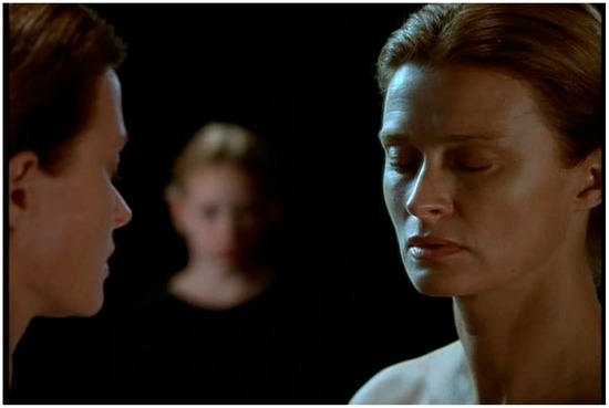 The reference to the icon is instructive and suggests a way to reconceive presence and absence and to envision communion. Instead of a cold, detached, and idolatrous distancing of the observer from the comprehended object of the gaze, the encounter with an icon involves a subversive process whereby the one seeking and looking is discovered and beheld. The face as icon is not an idolatrous object to be manipulated to satisfy our wishes—the very trap into which so many of Bergman’s characters fall. Instead, the face looks back. In Bergman, the looking back often occasions a vampiric battle of wills between the two gazes. By contrast, in the experience of the icon, one touches and is touched; one is receptive, as Marianne is both in the church and with her daughter, to being affected by another [22,23].6 The prospect of union is no longer a paralyzing peril or an anxiety-producing hazard but a welcome vulnerability to another.