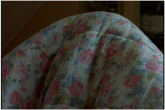 Consumed with their lusts and rivalries, the adults are but dimly and fleetingly aware of their impact on Isabelle. There is a terrifying scene in which Isabelle alone in her room relates to one of her dolls the following nightmare. Although the season is summer, it is cold and snowing. She encounters a lady who wears her mother’s fur coat and who, she soon discovers, is eating children. “There is no way out”, she says, and she is “very scared”. Images of the violation of the natural order run through the dream, which Isabelle narrates with chilling dispassion. Even more chilling is the way in which the scene emerges from a scene of David, in one of his moments of wrathful envy. The two scenes are cut in such a way that David nearly merges with Isabelle or rather Isabelle’s nightmare emerges from David (Figure 6, Figure 7, Figure 8 and Figure 9).