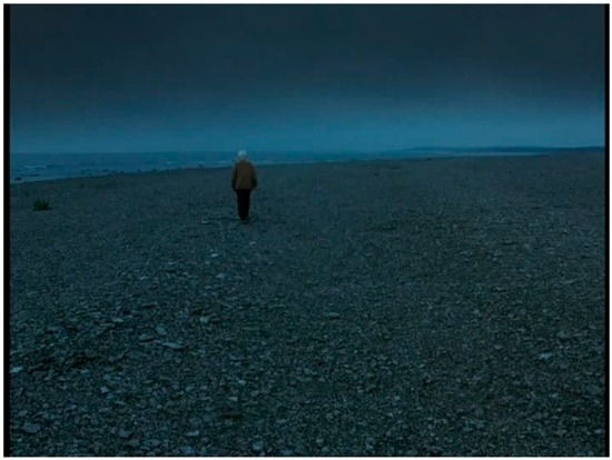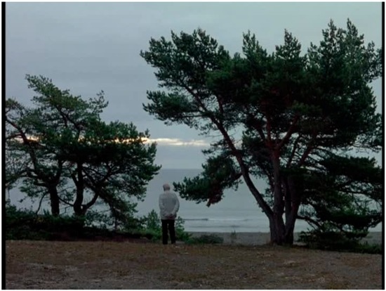 Because Faithless is quite consciously a film about an artist calling to life characters who in turn narrate and question one another about events, there is a greater emphasis on speech than is typically true of Bergman’s films. However, what is shown is often more powerful than what is said. Indeed, the film begins and ends with the director, Bergman, alone, with images of him in an empty house or on a barren coastline, framed by the seemingly endless sea (Figure 10 and Figure 11).