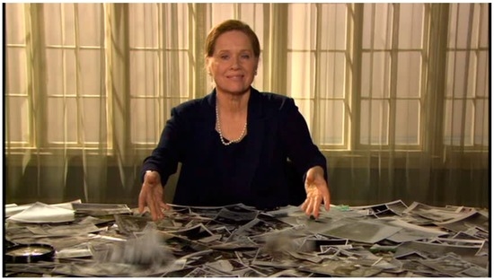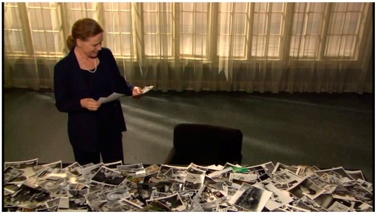 The film begins and ends with Marianne (Ullman) holding family photographs and directly addressing the camera (Figure 15, Figure 16 and Figure 17). At the outset, pictures of her life with her former husband Johan (Josephson) prompt her to plan a visit to see him, after years of estrangement. We learn early on that they had two daughters together, one of whom Martha, has drifted into a catatonic state and lives in an institution. Marianne’s direct address to the camera constitutes a kind of private, intimate confession. The telling of the story is prompted by reflection on images, which make the absent present or at least recall them to memory. These are typical mechanisms and motifs in Bergman. The opening of Scenes from a Marriage, which Saraband recalls directly and indirectly, features an apparently happily married couple being interviewed about their marriage for local TV and is instructive. The couple responds jovially to the superficial questions of the popular media, but Bergman’s film will take us beneath the surface to reveal tortured souls.