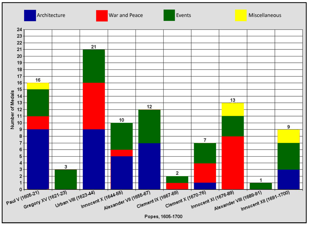 Papal Annual Medals (1605–1700: Distribution by Pope). Credit: Author.