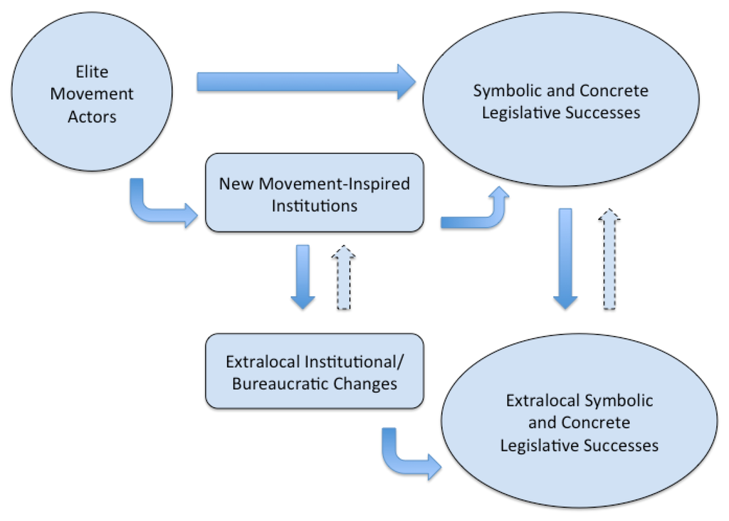 In the following, we characterize the contemporary conservative Evangelical movement as an example of contentious politics, a movement that relies on both institutional and noninstitutional tactics to achieve political outcomes. Examining multiple institutional and legislative outcomes related to the Faith Based Initiative, we seek to understand why some states have established state faith-based bureaucracies and passed significantly more faith-based legislation. We find that the influence of elite movement actors within state Republican parties has been central to these policy achievements. Furthermore, we find that the presence of movement-inspired offices increase the rate of adoption of legislation, and the passage of symbolic policies increases the likelihood of passage of more substantive faith-based legislation. We argue that the examination of multiple outcomes over time is critical to capturing second order policy effects in which new institutions, the diffusion of legislation and institutions, and increasing policy legitimacy may shape subsequent legislative developments.