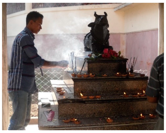 The Tiwas’ intersection with mainstream Hindu religion is fascinating. The Gobha king of the Tiwas traditionally has always been a Hindu. To this date, the royal family continues to worship Lord Krishna. During my fieldwork, I found only a handful of the Tiwa people who embraced the Vaiṣṇava path. Most Tiwas were Śaivites and consider Mahādeva to be their Supreme deity. They also worship Goddesses, though some scholars believe it might be a result of influence by the Koch tribe that live nearby (Mishra 2004, p. 17). I also found a small percentage of Tiwas to be Christians. Both the Śaivās and the Vaiṣṇavas identified themselves as Hindus, but they avoided associating their rituals and religiosity with the Brahmanical orthodox Hindu religious traditions or with any Tantric transmission popular in Assam. They believed that the Tiwa religious tradition was distinct from the rest of Hindu India’s practices.