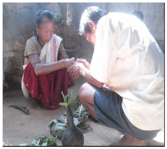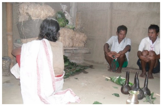 I interviewed Ma Muni and I documented many sessions in which she communicated with the departed, in a ritual setting. The Tiwas’ understanding of religion and religious ceremonies can be partially explained by employing the work of Henri Hubert and Marcel Mauss. As Jeffrey Carter explains, “Hubert and Mauss believed that religious ideas are ‘social facts’ and that ritual ultimately has a ‘social function,’ for it helps define and maintain social solidarity by working to reinforce shared values and collective conceptions” (Carter 2006, p. 88). This is particularly true for the Tiwas. In a situation in which the Tiwas feel that their religious and cultural identity is questioned by larger mainstream or orthodox Hindu voices, the tribe needs their indigenous rituals to serve a social function that reinforces their collective identity. Over the years, rituals around death and the cleansing of evil spirits have taken center stage. Most of these ritualistic practices are held in a fashion that enables most of the members of the Tiwa tribe to participate. While there is a host family, the participation of the entire community helps reinforce the Tiwas collective conceptions of religion and religiosity.