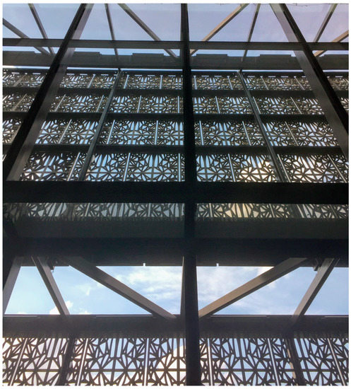Symbolically, the building’s shimmering brownness and its intentional use of bronze-clad aluminum for visual effect (shown in Figure 3) cannot be overstated. The building’s skin appears to be different shades as the sun and clouds shift during the day, recalling the shades of African American skin, a primary identifying mark of blackness. In the NMAAHC’s exterior, brown skin/blackness is displayed as beautiful. It is notable that when we take the museum’s design as a whole, blackness is neither reduced to an experience of oppression nor resistance. The design conveys joy and delight, as well.