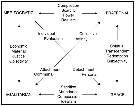 The key characteristics of four opposing moral perspectives that determine opportunities and outcomes within society ([1], p. 24).