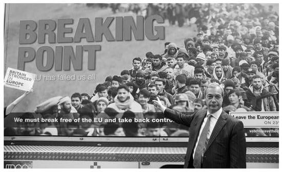 - Stewart, Heather, and Rowena Mason. 2016. Nigel Farage’s anti-Migrant Poster Reported to Police. The Guardian, June 16. Available online: https://www.theguardian.com/politics/2016/jun/16/nigel-farage-defends-ukip-breaking-point-poster-queue-of-migrants (accessed on 26 June 2018).