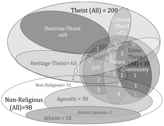 Combined, 79 of these emerging adults were solely Non-Religious, with an additional 19 who were partially Non-Religious. This equates to nearly one-third of the interviewees, for the second largest cultural package grouping, smaller than Theistic but larger than Extra-Theistic. Thus, one of the most evident findings of these results is confirmation of the initial overlap in categories identified by