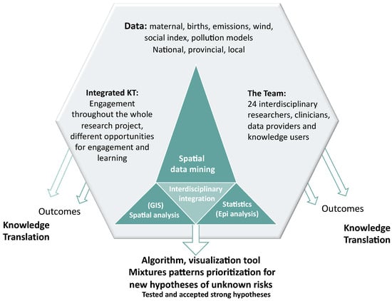 Furthermore, the possible association and influence of multiple environmental factors on ABO must be understood within a geospatial context of co-location, after considering maternal confounders. The complexity of these data requires analytical tools that go beyond conventional statistical and geographical approaches, such as data mining. Data mining (DM) is used in the domain of health sciences for hypothesis development and to explore early diagnosis and prevention of diseases []. The spatial aspect of DM is also used in health science applications such as detection of epidemics and pandemics [,]. However, the use of advanced spatial DM for the evaluation of complex geospatial relations between environmental factors (e.g., exposome) and different health outcomes is still in early stages and has good potential for future application in the research on air pollution []. Considering that this type of research has a unique, complex and multifaceted context which requires consideration of time and space, there is a need for interdisciplinary and multisectoral engagement [,,,].