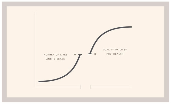 The shifting focus of values from ‘fighting disease’ to ‘promoting health’ with transition from population expansion to plateau in both population growth and the availability of resources.