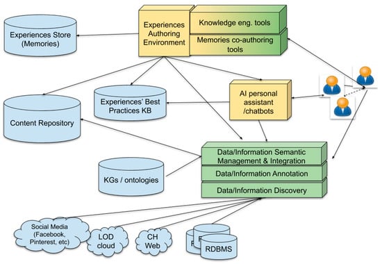 Towards promoting inclusive access and giving an integrative character to the cultural heritage experience by exploiting novel technologies and tools, a crowd-sourcing online platform is proposed (Figure 1 depicts the proposed architecture). In its core, the platform will constitute a crowd-sourced repository facilitating the collection of user-generated shared experiences and content, both contemporary and historical. The collected content, tangible or intangible, will involve a wide range of elements, from traditional literature, dances and folk songs, to contemporary music and art, and from stories and narrations. The stored content can take various media formats, from plain text, illustrations, and still pictures to motion films, videos and audio recordings (focused on sound preservation). In order to maximize accessibility, the platform aims to have a ubiquitous presence and utilize open source accessible technology [29]. As such, crowd input will be conducted through suitable Web user interfaces as well as mobile apps.