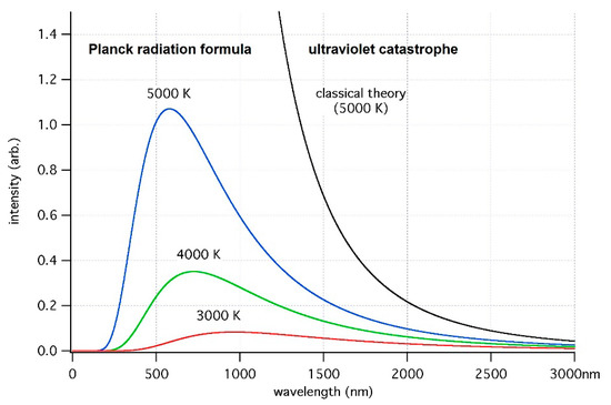 - Planck, M. On the law of distribution of energy in the normal spectrum. Ann. Phys. (Leipzig) 1901, 309, 553–563. [Google Scholar] [CrossRef]