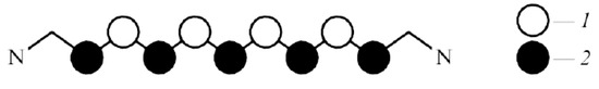 Ideal polymethine state (IPS) [50,51]. Charges reside on carbon atoms of the polymethine chain in the ground state; charges: 1, positive; 2, negative [37]. The polymethine chain length is defined as the distance between nitrogen atoms N. (Original citation)—Reproduced by permission of The Royal Society of Chemistry.