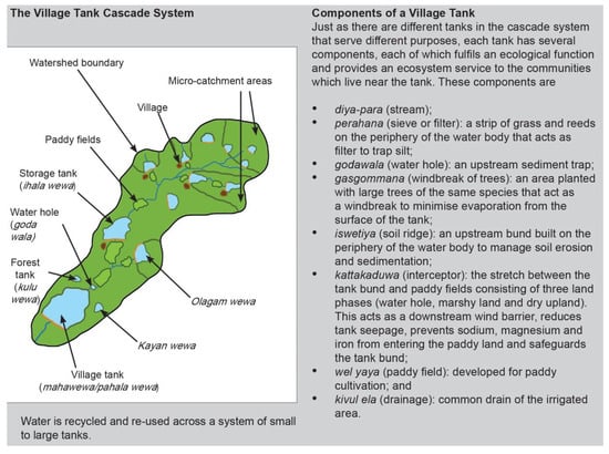 - FAO. A Proposal for Declaration As a GIAHS: The Cascaded Tank-Village System (CTVS) in the Dry Zone of Sri Lanka. 2017. Available online: http://www.fao.org/giahs/giahsaroundtheworld/designated-sites/asia-and-the-pacific/the-cascaded-tank-village-system-ctvs-in-the-dry-zone-of-sri-lanka/en/ (accessed on 15 October 2020).