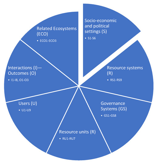 - Hinkel, J.; Bots, P.W.G.; Schlüter, M. Enhancing the Ostrom social-ecological system framework through formalization. Ecol. Soc. 2014, 19, art51. [Google Scholar] [CrossRef]