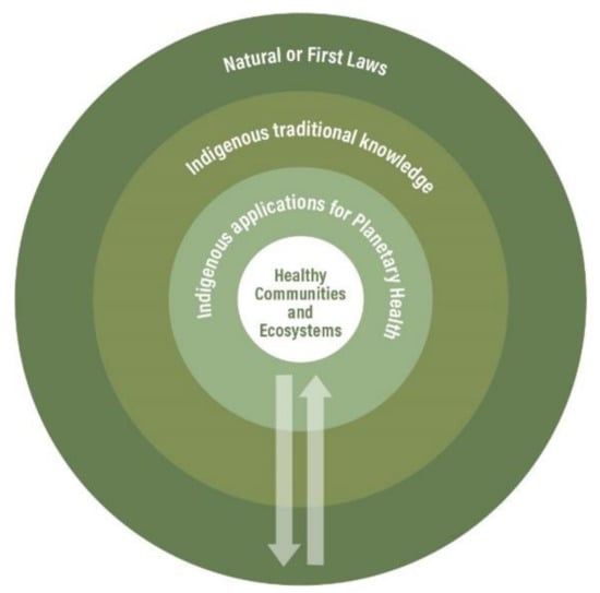 Failure to protect planetary boundaries [14] through the rooted cross-cultural knowledge of Natural or First Law will challenge the ability to protect the planet. Indigenous traditional knowledge (TK) is directly nested within the understanding of Natural or First Law. TK can be defined as “all that is known about the world around us and how to apply that knowledge in relation to those beings that share the world” [15]. TK systems are more species and environmentally inclusive which roots the current broad and increasingly heightened concern about the rate of loss of our ecosystems and the impacts of this on the life and balance of Mother Earth [8]. Indigenous TK has resiliently spanned millennia; however, it is only recently that we have seen a growing recognition of the importance of TK as a foundation for global climate and health solutions [16].