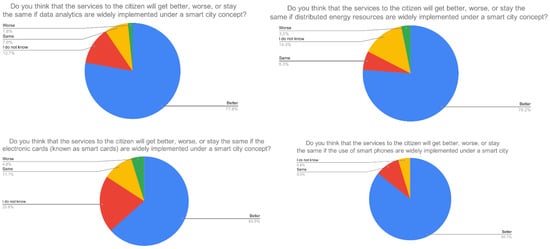 Question: “Do you think that the services to the citizen will get better, worse, or stay the same if data analytics, distributed energy resources, electronic cards, and smart phones are widely implemented under a smart city concept”?