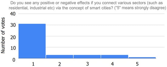 A similar question—requiring though synthetic thinking and a critical approach was asked to the respondents, asking if connecting various industrial sectors via smart cities, would have a positive or a negative effect overall (Figure 6).