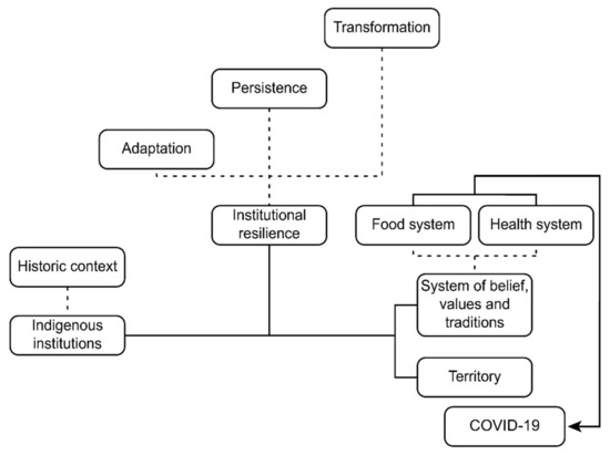 The indigenous peoples adopt and respect their informal institutions, these rules have allowed a balance with their environment. For example, surviving disease or climate change. In times of pandemic, the tracking and understanding of the broad ancestral knowledge of indigenous groups is necessary. In this study, a case study is analyzed in detail to show the potential of institutional resilience towards one sector: food. However, on this basis, we try to extend the analysis to most of the world’s indigenous peoples, using a broad review of the literature to track their informal institutions. These steps will lead us to identify their institutional resilience through the response strategies that each group of indigenous peoples in the world is deploying in the face of the COVID-19 pandemic.