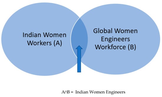 The engineering workplace is male dominated and many women do not feel very comfortable in it, and hence they deviate from core engineering fields to other managerial positions or withdraw themselves from the labor market, which is ultimately a loss for the engineering sector [44]. Although the pandemic has impacted everyone, the impact was gender biased. Women were more adversely affected by the pandemic in India and elsewhere than their male counterparts. However, Indian women workers do not form a homogenous group but are part of a quite heterogeneous spectrum and women engineers are at the high end of it. Being from the same socio-cultural background, Indian woman engineers share similar concerns to other Indian working women, but these differ based on their income level and educational background. Compared with women engineers in other countries, however, Indian women engineers have the same economic and educational backgrounds (Figure 2).