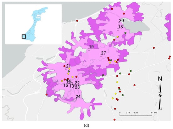 | 2 | List of Supermarkets (point) | Website of major supermarkets in Ishikawa, navigation map website [26,27] | We created a list of supermarkets by collecting their names and addresses. We converted the addresses to coordinate values and plotted them on a map. |