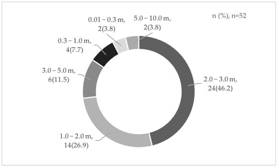 Kochi City has 114 CCs, with a total capacity of 5531 people, a median of 101 people, and a capacity range of 20 to 265 people. Of CCs, 52 (45.6%) are in areas where tsunami inundation is expected. Figure 4 shows the number of CCs for each inundation depth.