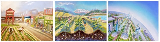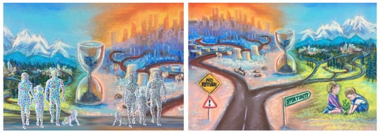 Recognizing the importance of nature and creativity for personal growth and community building, the Mutual Reawakening Project was established to explore visions, stories, and experiences of human and planetary healing in the context of current environmental upheaval. Funded by the Nova Institute for Health under the direction of one of the present authors (S.W.), this project seeks to inspire others to imagine new ways of living and create a vision for transformative action [,]. The transdisciplinary project team comprises a diverse group including physicians, an environmental psychologist, a medical anthropologist, graphic designers, community artists, curators, and writers.
