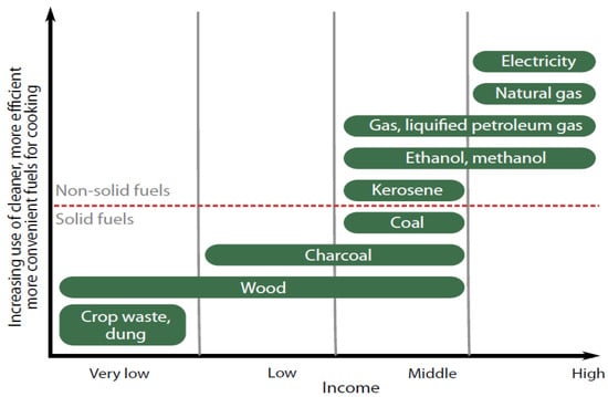 - Dongzagla, A.; Adams, A.-M. Determinants of urban household choice of cooking fuel in Ghana: Do socioeconomic and demographic factors matter? Energy 2022, 256, 124613. [Google Scholar] [CrossRef]