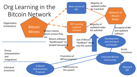 The processes that take place within the Bitcoin network also provide useful insights for organisational learning, in terms of the rigour and level of involvement in both the development of solutions and the processes for approving and implementing them. Although Bitcoin focuses more on refinement rather than exploratory forms of learning [49] to ensure network security, this provides insight into specific types of organisations pursuing development. Organisations operating in highly controlled environments (such as aerospace or nuclear) would likely benefit from improvements only becoming implemented once they had been extensively reviewed. This is unfortunately demonstrated by the expedited development of Boeing’s 737 Max, where system interactions were not identified during development, leading to fatalities [50]. Alternatively, the Bitcoin approach to improvements could be applied if fundamental changes to a business were being proposed, such as changes to organisational missions, values or strategies that need widespread consensus to become embedded into an organisation.
