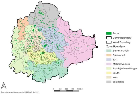 - Bruhut Bengaluru Mahanagara Palike (BBMP). Available online: https://data-opencity.sgp1.cdn.digitaloceanspaces.com/Documents/Recent/BBMP-DetaliedListofParks.pdf (accessed on 26 July 2023).
