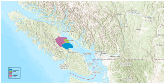 - Comox Valley (Regional District, Canada)—Population Statistics, Charts, Map and Location. Available online: https://www.citypopulation.de/en/canada/britishcolumbia/admin/5926__comox_valley/ (accessed on 15 January 2024).
