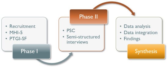 Two-phase explanatory sequential design. Note: MHI = Mental Health Inventory-5. PTGI = Posttraumatic Growth Index-Short Form. PSC = Perspectives on Social Change, devised by researcher.