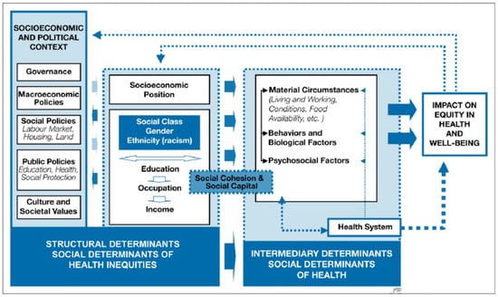 Fourthly, the current WHO SDH Framework only highlights material circumstances, behaviours and psychosocial factors as IDHs [7]. Furthermore, contextual elements driving these IDHs are predominantly in relation to human factors, such as economic policies, political governance and socio-cultural values [7]. However, this review has highlighted the significant influence of ecological factors on TB’s disproportionate burden on low-SES populations—namely the prevalence of smoking and use of biomass fuels which worsen air quality in low-income housing and deterioration in urban health highlighted by slum-based TB transmission. Therefore, this review proposes amendments to the current iteration of the WHO SDH Framework to incorporate EDHs into each domain of the framework to inform more holistic, sustainable interventions that tackle social and ecological drivers of disease.