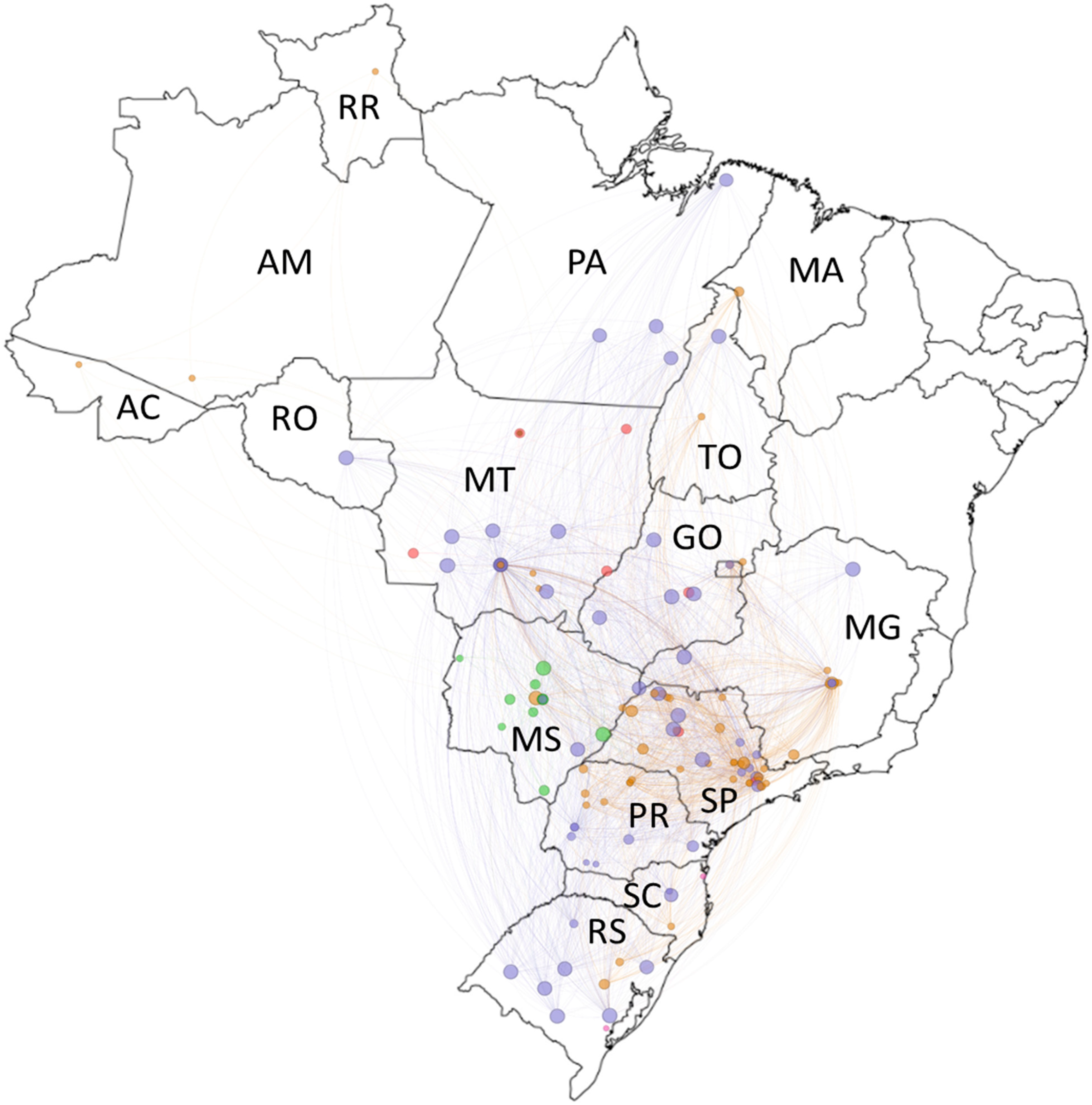 Figure 3 shows the spatial distribution of meatpacking network clusters, illustrating how traceability governance is shaped by Brazil’s territorial diversity.