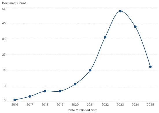 Figure 3 presents the year-by-year record of publications concerning PHAE, drawn from our curated dataset hosted on https://www.lens.org/ [40], covering the years 2015 to 2025. The years with the highest number of scientific papers were 2023 (52 articles), 2024 (43 documents), and 2022 (37). It is worth noting that when the search in The Lens was completed in 2025, 20 open-access articles were identified, surpassing the number found in any of the years prior to 2022.