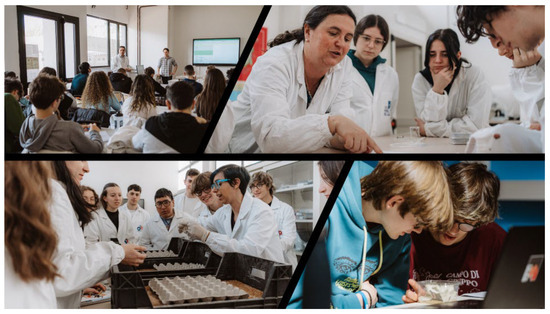 These insights underscore the value of participatory educational approaches that actively involve students in the learning process, particularly within the framework of effective Education for Sustainable Development (ESD) in secondary schools. The project also broadened the students’ understanding of global issues through the lenses of sustainability and innovation. Strengthening the connection between research, education, and the university’s third mission can generate deeper and more lasting societal impact. In this case, the project extended its reach through public events (Figure 7), engagement with families, primary schools, and local communities, and by addressing cultural barriers to the acceptance of novel foods. Ultimately, empowering students to become agents of change in their own lives and communities is a crucial step toward building a more sustainable future.