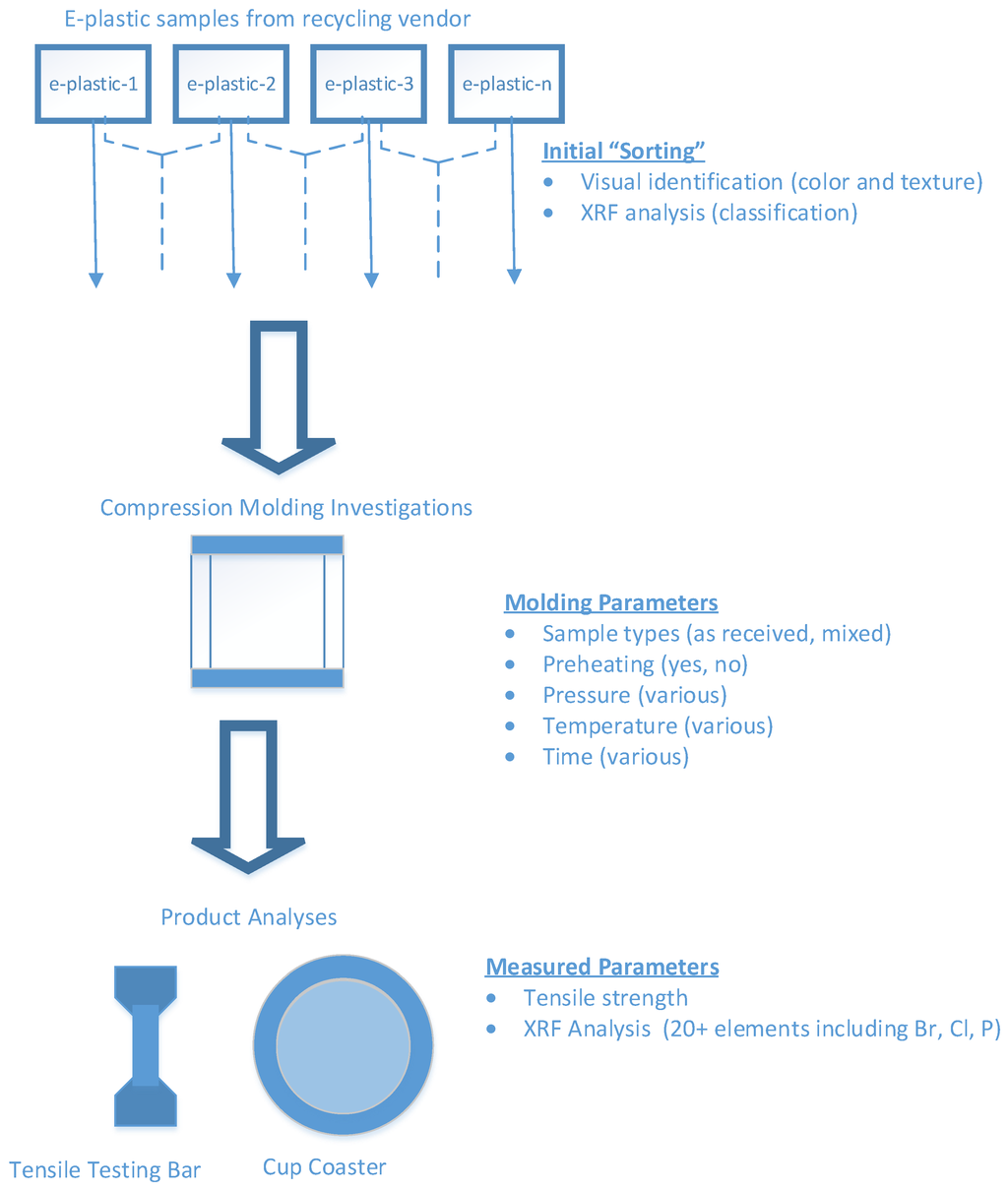 - Investigate the feasibility of using e-plastics for compression molding instead of disposal;