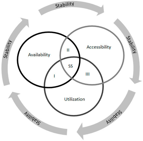 It is therefore reasonable and important to protect soils from dangerous erosive or degradative processes and to ensure continuous access to quality soils in the short term to guarantee long-term benefits. This imperative raises the need to bridge the gap between sustainable soil stewardship and development practice. Despite recent policy initiatives, such as the Global Soil Partnership [14] and the Intergovernmental Science-Policy Platform on Biodiversity and Ecosystem Services (IPBES) Land Degradation Assessment, the need to embed soil into key sustainable development instruments and initiatives such as the Sustainable Development Goals (SDGs) remains both elusive and urgent. This has resulted in the idea of soil security. McBratney and colleagues [15] defined soil security as concerning the maintenance and improvement of the world’s soil resource to produce food, fiber, and freshwater, contribute to energy and climate sustainability, and maintain the biodiversity and the overall protection of the ecosystem. Soils should be secured to address three cross-cutting challenges: (i) balance the increasing demand for food and ecosystem services to the supply from soils; (ii) balance the competing demands and claims for soils in an equitable and just manner so that the billions of livelihoods that depend directly on soils are not disturbed beyond elastic limit; (iii) ensure sound agricultural, environmental, and socio-economic use and management of soils in response to threats to soil quality and quantity. The objective of this paper is to contribute to the evolution of the discourse on soil security by proposing the use of the food security dimensions, which will be readily accessible to a wider range of stakeholders and ease conceptualization, monitoring, and assessment of soil security to inform policy and operational decisions.