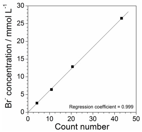 Br− concentration vs. count number dependence obtained from KBr solutions by X-ray fluorescence measurements at room temperature. The error bars fall within the data markers.