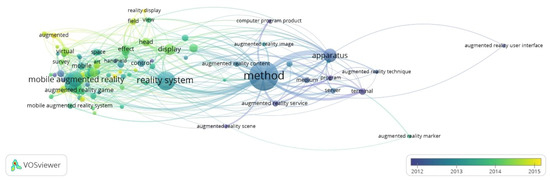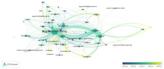 The literature review, covering the time since 2009, reveals the changing focus on problems concerning AR. The database searched with most cited publications was Microsoft Academic. There were 5000 scientific papers. A contextual analysis of titles has been visualized using the VOSviewer tool (v.1.69, [41], Figure 3).