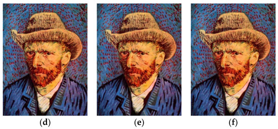 In Figure 9, we select another target image (Figure 9b) which is irrelevant with the secret image (Figure 9a). Although the transformed image (Figure 9c) in Hou et al.’s method has less visual distortion than the proposed method (Figure 9e), the ultimate stego-image created by the proposed method (Figure 9f) has better visual quality than Hou et al.’s method (Figure 9d). Note that stego-image quality is the key because it is the final image sent to the receiver. Therefore, we can develop the RIT by improving the stego-image quality.
