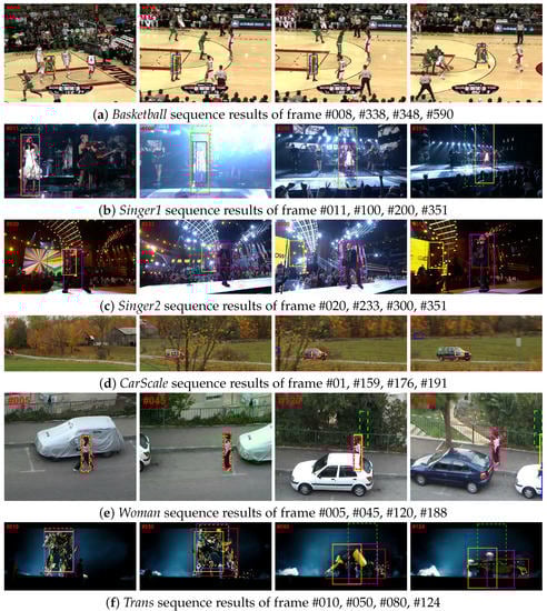 - Kristan, M.; Leonardis, A.; Matas, J.; Felsberg, M.; Pflugfelder, R.; Čehovin Zajc, L.; Vojir, T.; Häger, G.; Lukežič, A.; Fernandez, G. The Visual Object Tracking VOT2016 Challenge Results. In Proceedings of the European Conference on Computer Vision (ECCV), Amsterdam, The Netherlands, 11–14 October 2016; Springer: Cham, Switzerland, 2016; pp. 191–217. [Google Scholar]
